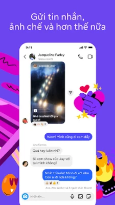 Lan tỏa câu chuyện của bạn bằng đa dạng hình thức sáng tạo. Nhanh chóng cập nhật tình hình với bạn bè thông qua Tin và Ghi chú, những chia sẻ thoáng qua biến mất sau một ngày. Xây dựng những cuộc trò chuyện gần gũi và chia sẻ chân thực cùng nhóm Bạn thân. Lưu giữ và kể lại những kỷ niệm đẹp về chuyến đi hay sự kiện đặc biệt trên Bảng feed cá nhân. Đắm mình vào thế giới của video ngắn đầy cuốn hút trên Reels, nơi bạn có thể biến cuộc sống thành những thước phim sống động. Thỏa sức sáng tạo các bài đăng của mình với vô vàn mẫu có sẵn, hiệu ứng âm nhạc, nhãn dán độc đáo và bộ lọc nghệ thuật được thiết kế riêng.
