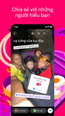 Thắt chặt tình bạn, kết nối trái tim qua những khoảnh khắc đời thường, giản dị. Ứng dụng giúp bạn dễ dàng chia sẻ những câu chuyện ý nghĩa và ảnh đẹp trực tiếp lên Instagram, tạo nên những kỷ niệm đáng nhớ.