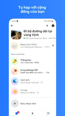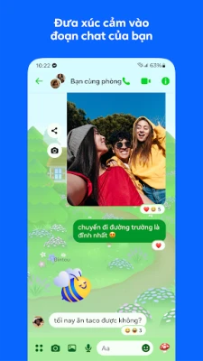 Mở rộng vòng kết nối của bạn trong Messenger bằng cách dễ dàng thêm bạn mới qua mã QR tiện lợi hoặc gia nhập các cộng đồng sôi động của trường lớp, khu phố hay những nhóm có cùng sở thích. Luôn cập nhật thông tin từ những người sáng tạo nội dung yêu thích thông qua các kênh thông báo độc quyền, mang đến cái nhìn chân thực về cuộc sống của họ. Thỏa sức thể hiện cá tính với Meta AI* trong việc tạo và chỉnh sửa ảnh, biến ý tưởng thành hình ảnh động độc đáo. Chia sẻ những khoảnh khắc đời thường qua Tin hoặc bày tỏ suy nghĩ nhanh chóng qua Ghi chú, cả hai đều biến mất sau 24 giờ. Cuộc trò chuyện của bạn sẽ trở nên sống động hơn bao giờ hết với nhãn dán động, GIF, biểu tượng cảm xúc và kho chủ đề phong phú, được cập nhật liên tục để phù hợp với mọi tâm trạng và sự kiện.