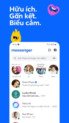 Messenger là cầu nối đa năng, giúp bạn duy trì liên lạc không gián đoạn với bạn bè và gia đình, dù họ ở bất cứ đâu trên thế giới. Dễ dàng tìm kiếm và kết nối với những người thân yêu từ Facebook, Messenger mà không cần phải trao đổi số điện thoại. Ứng dụng mang đến trải nghiệm trò chuyện mượt mà, cùng các cuộc gọi chất lượng cao, đảm bảo mọi tương tác đều rõ ràng và ý nghĩa, đưa những người quan trọng đến gần bạn hơn.